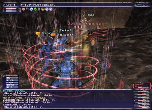 最初、黒を釣るとスリプガII→ファイガIII→メッタ打ちのコンボが炸裂してしんさんが落ちて、「これやべーんじゃね?w」と思いながらも、ぜるるんにヘッドで援助してもらいながら蝉を回してWSでタゲ取って盾やってました。